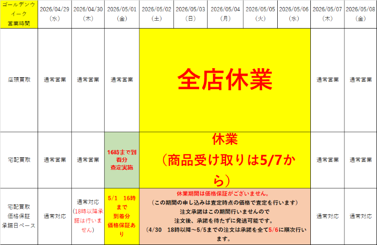 ※期間中の宅配買取の承諾に関しては、5/6(水)より順次対応いたします。